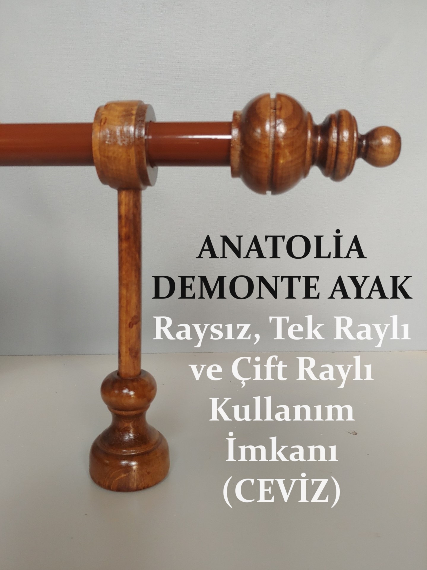• Ahşap rustik başlığı, bağlantı ayağı (klasik / demonte), metal boru
